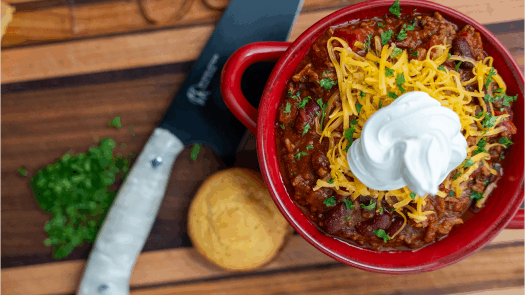 - Loaded Baked Potatoes: Spoon the chili over baked potatoes and finish with cheese and chives.