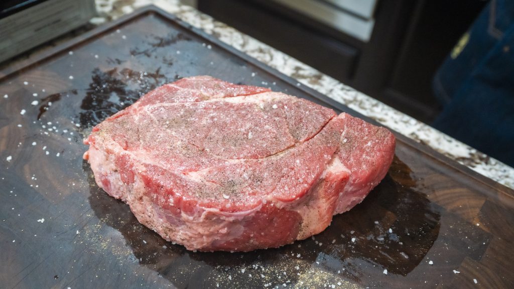 - Sprinkle 2 teaspoons of sea salt, 2 teaspoons of black pepper, and AB’s B Rub evenly across the surface. Rub it in well with your fingertips, making sure to coat all sides.