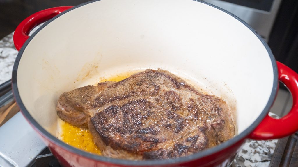 - Sear the roast for about 2 minutes on one side until you see a golden-brown crust. Flip and repeat on the other side. Don’t forget to sear the edges for maximum flavor.