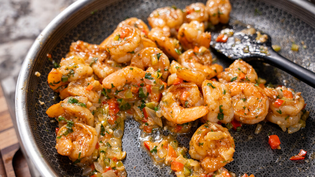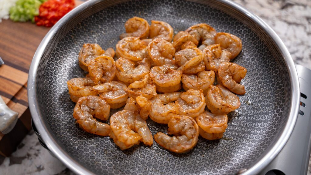 - Remove the shrimp from the pan and set aside.