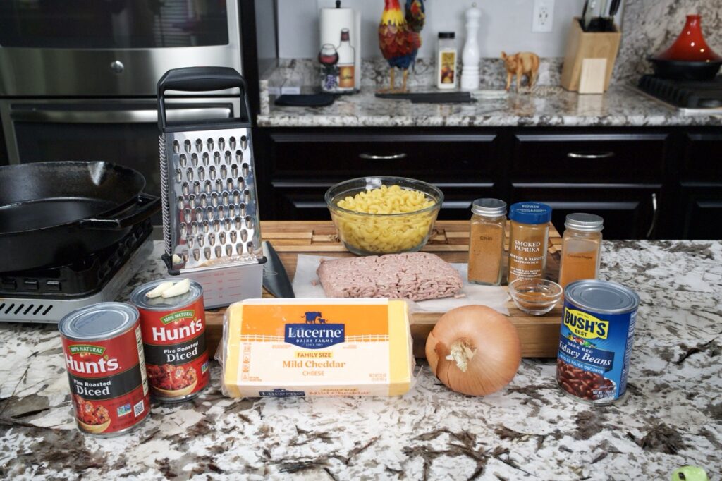 🥣 Key Ingredients: Ground beef, kidney beans, elbow macaroni, cheddar cheese, diced tomatoes