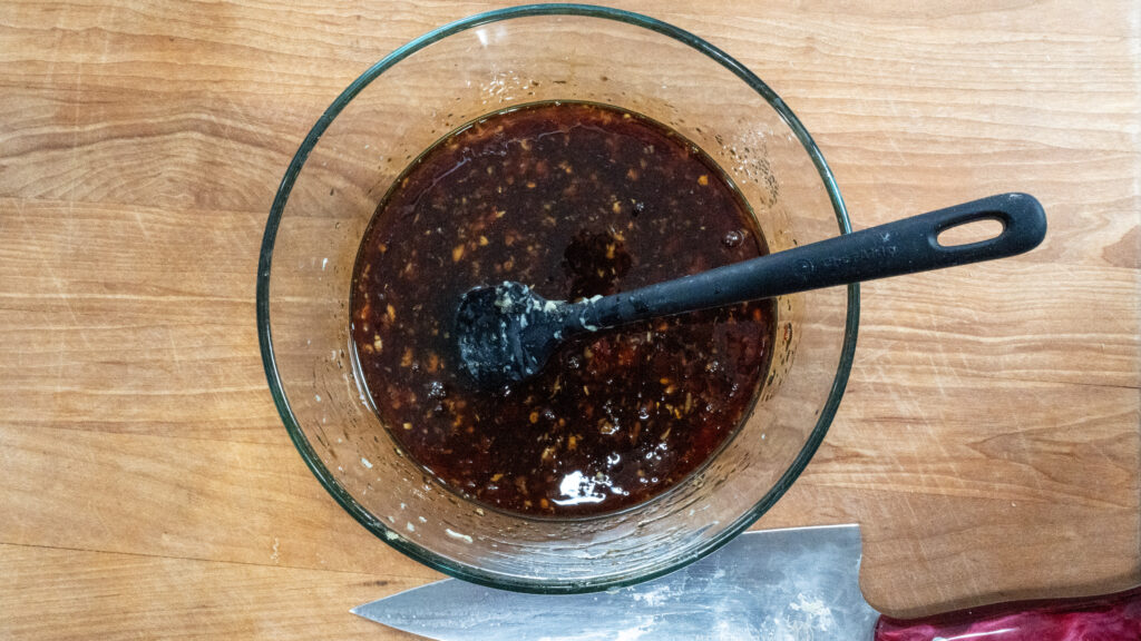 In a medium bowl, whisk together the sweet chili sauce, soy sauce, rice vinegar, honey, garlic, and ginger until smooth and well combined. This mixture should taste sweet, savory, tangy, and slightly bold.