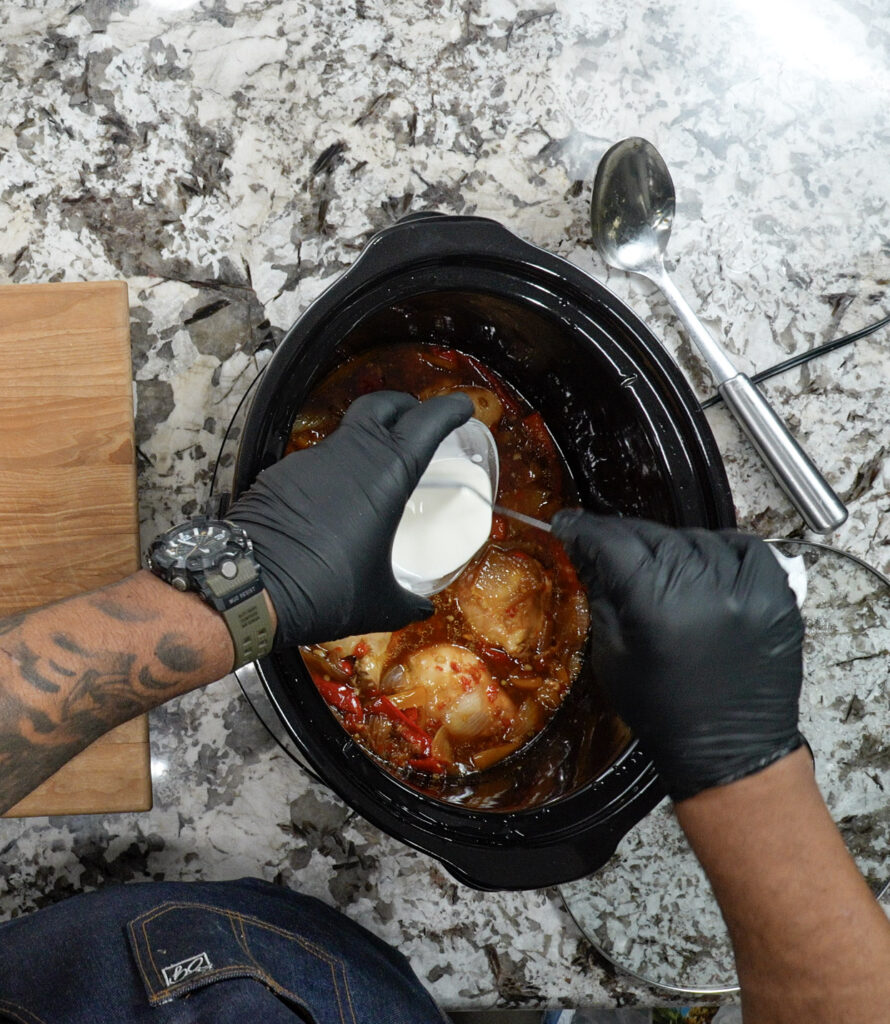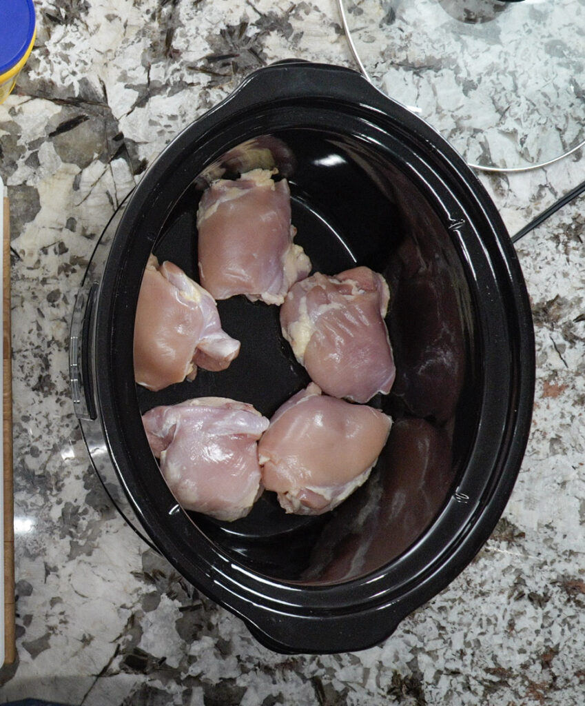 *Chicken thighs usually give the best texture because they stay juicy during slow cooking.