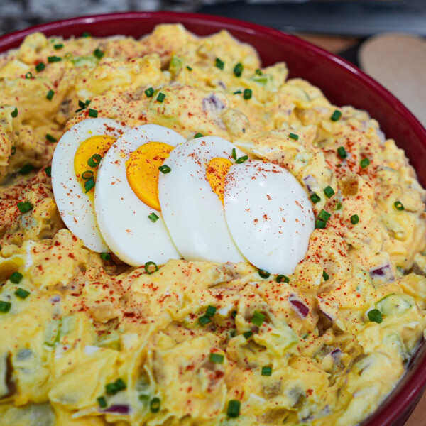 Are you ready to elevate your side dish game? Today, I’m sharing a recipe that’ll have your taste buds dancing with joy – my mouthwatering Deviled Egg Potato Salad. This isn’t your ordinary potato salad, folks. It’s a delicious twist on a classic favorite, combining the creamy goodness of deviled eggs with the heartiness of potatoes. Get ready to take your BBQ gatherings to the next level with this crowd-pleasing dish!