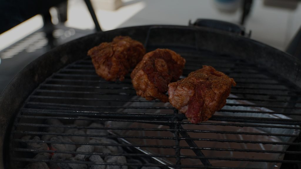 Place the seasoned oxtails directly on the grates, over the indirect heat side of your grill.