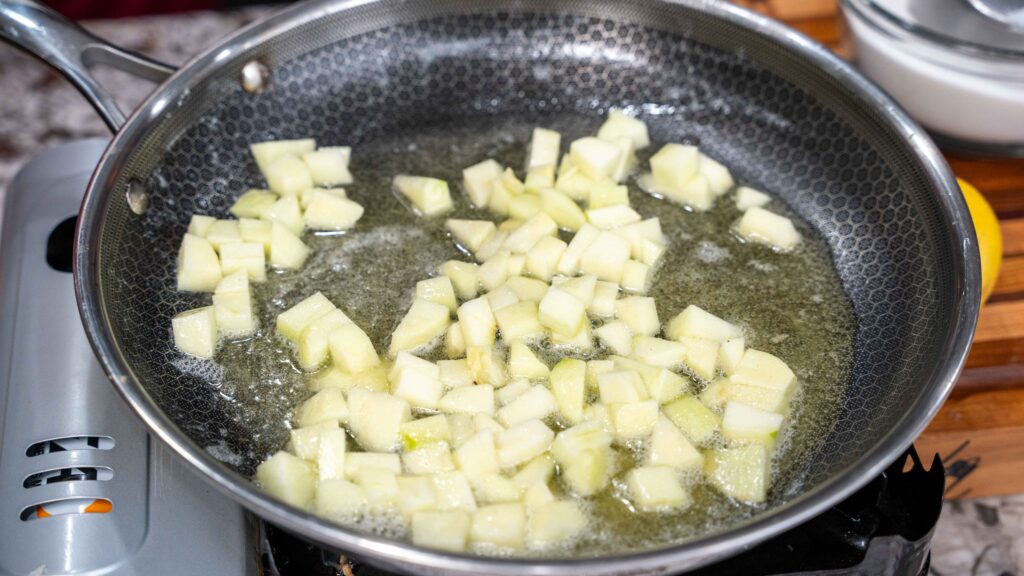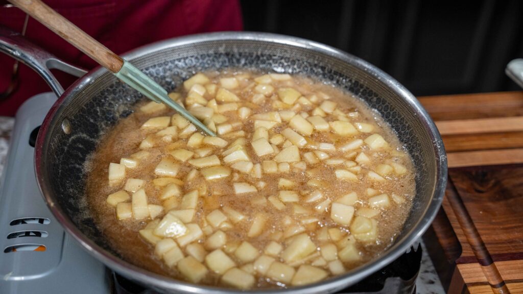 - Stir occasionally until apples soften, about 8–10 minutes.