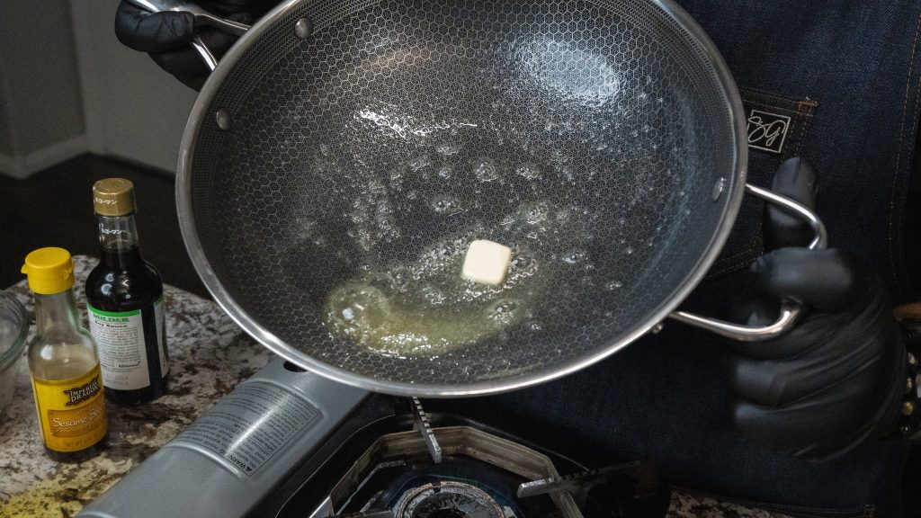 - Once the oil is hot, add 1 tablespoon of minced garlic. Cook the garlic for about 30 seconds, just until it becomes fragrant. You don’t want to burn it—just get that garlic flavor infused into the oil.
