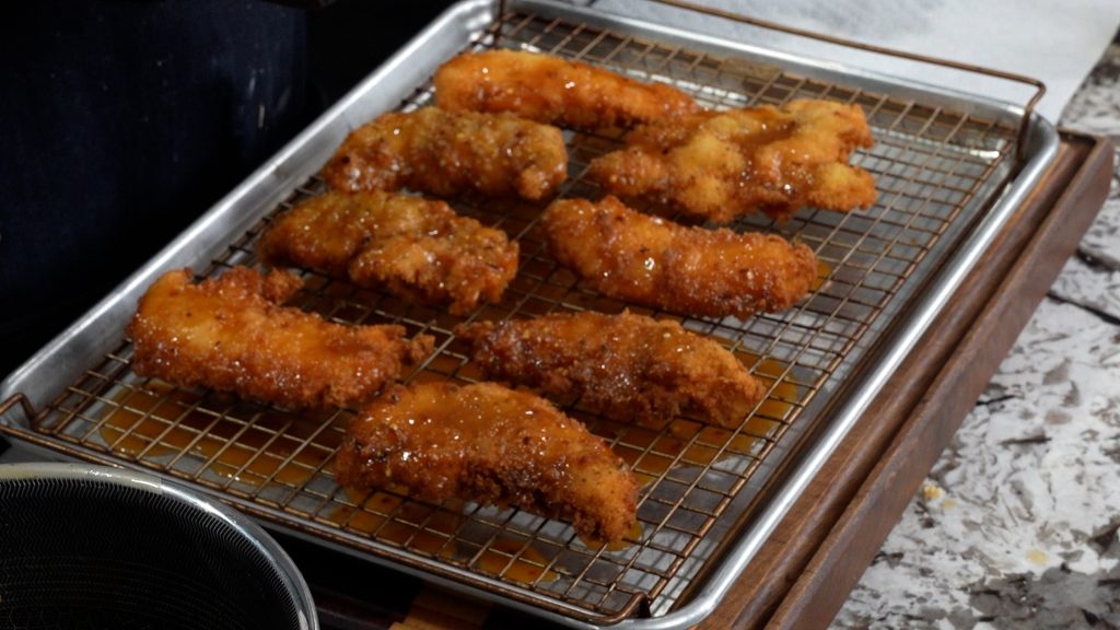 - Drain properly: Set fried tenders on a wire rack over a baking sheet instead of paper towels to keep the crust from getting soggy.