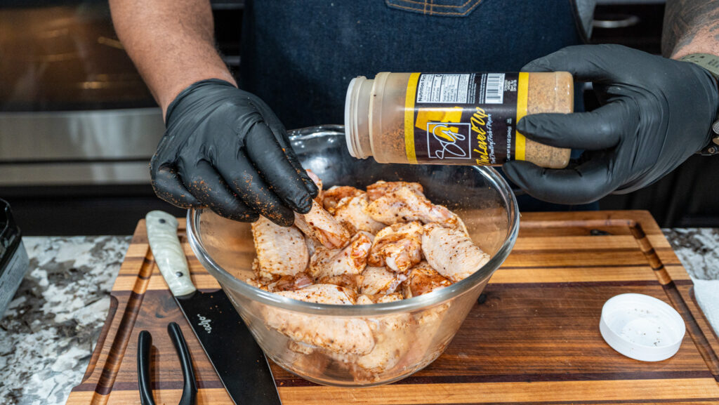 1. Season the wings. Pat wings dry. Toss with smoked paprika, garlic powder, A Rub and salt.