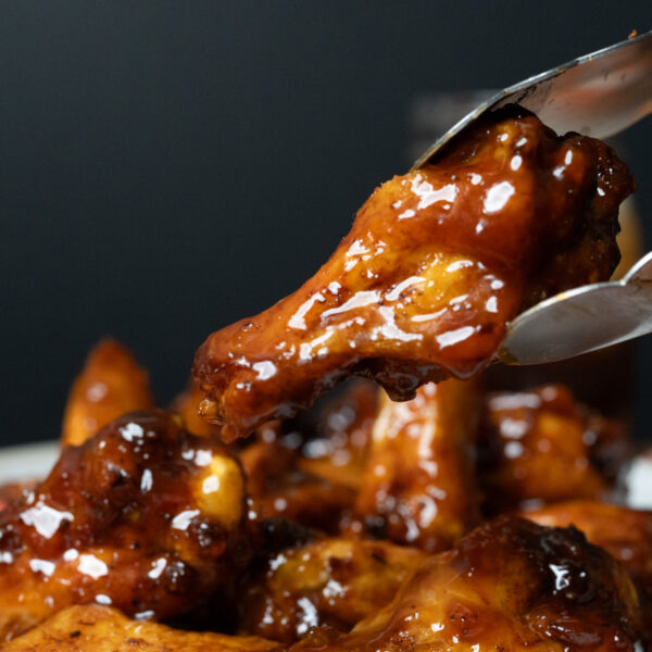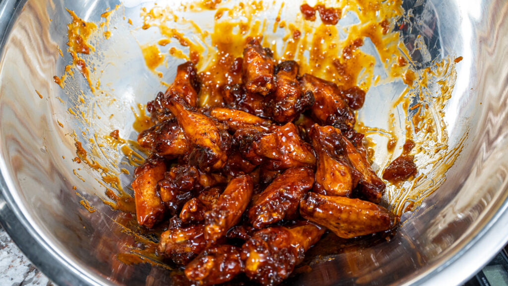• Toss wings in the hot honey peach glaze and serve immediately.