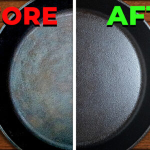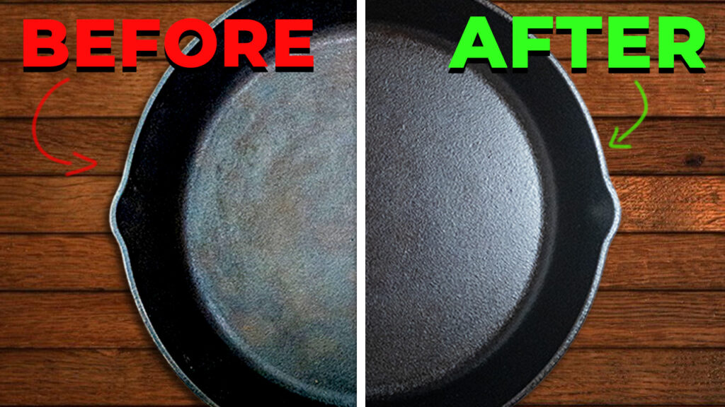 After about two rounds, your cast iron should look brand new—dark, glossy, and ready to cook. No rust, no sticky spots, just a naturally nonstick surface that only gets better the more you use it.