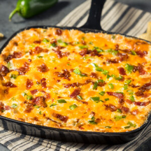 A creamy, cheesy dip packed with fresh jalapeños and smoky bacon, baked until bubbly and golden.