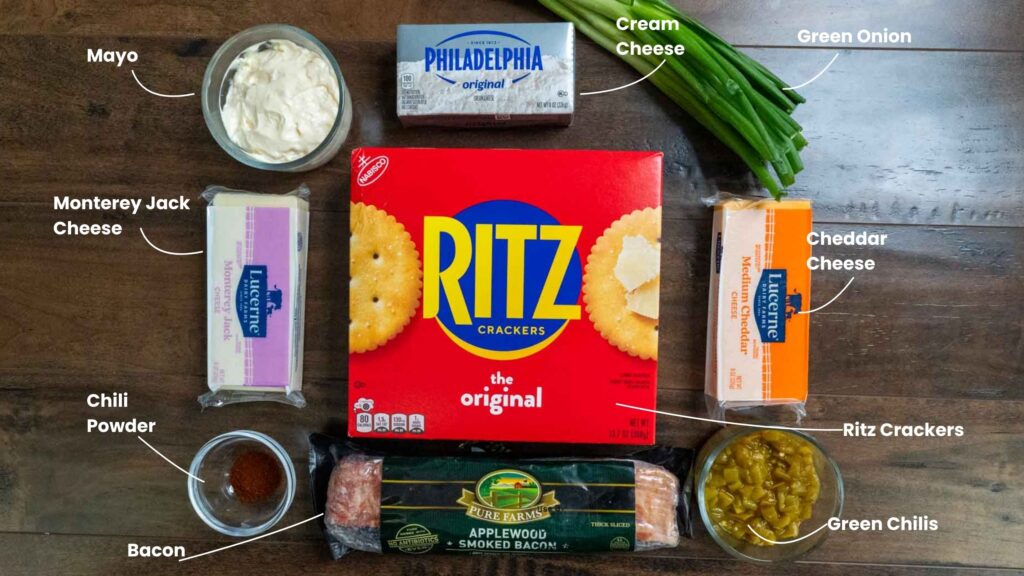 🥣 Key Ingredients: Cream cheese, cheddar cheese, bacon, green chilies, Ritz crackers