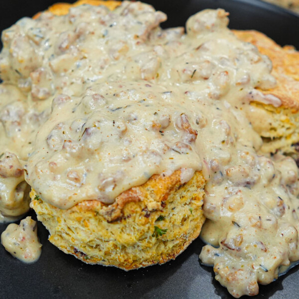 Easy Homemade Biscuits and Sausage Gravy with Cheddar and Herbs