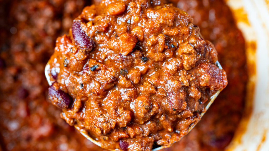 Warm gently on the stovetop over low heat or microwave in short intervals, stirring occasionally. The flavors deepen over time, making this chili even better the next day.