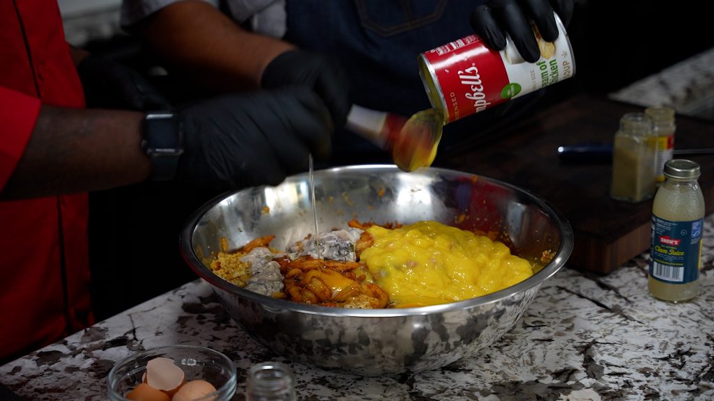 - Introduce the cream of chicken soup, lending the dressing a rich and velvety texture.