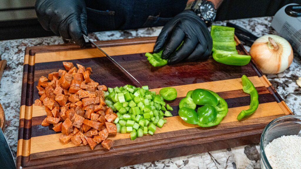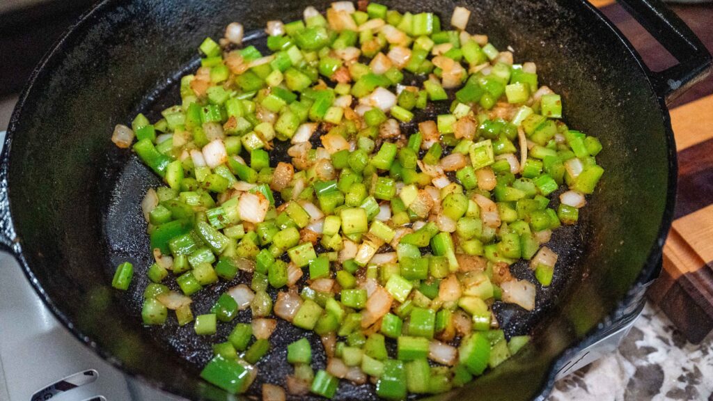 - Sauté the vegetables: Add the remaining olive oil if needed. Stir in onion, bell pepper, and celery. Cook until softened, about 5 minutes. Add garlic and cook for another minute until fragrant.