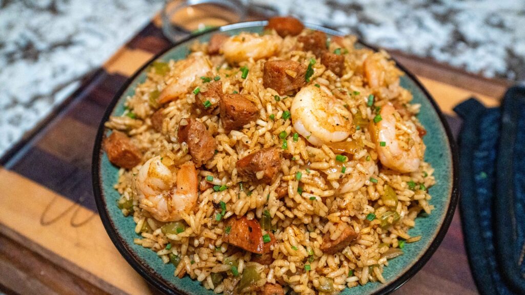 - Chicken & Sausage Dirty Rice – Replace shrimp with diced chicken thighs or breasts for a land-based version.
