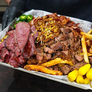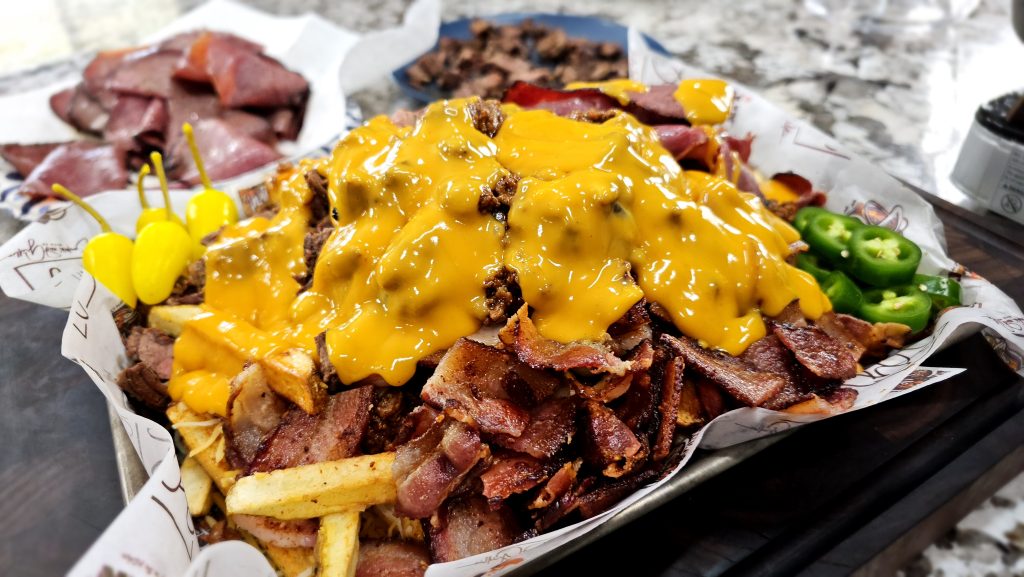 Welcome back to Smokin’ and Grillin’ wit AB! Today, I’ve got a recipe that’s gonna blow your taste buds outta the water: Smokin’ DUI Fries! Now, before you go raisin’ an eyebrow, let me tell ya, these fries are not your ordinary spuds. We’re talkin’ crispy, golden fries piled high with a smorgasbord of deliciousness—pastrami, thick-cut bacon, Mexican blend cheese, jalapenos, chili peppers, and more! Trust me, once you try these bad boys, you’ll be hooked!