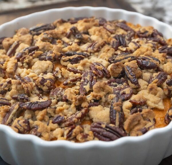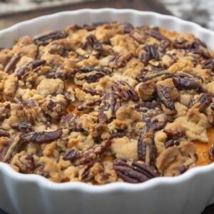 Sweet Potato Casserole with Butter Pecan Crumble Topping