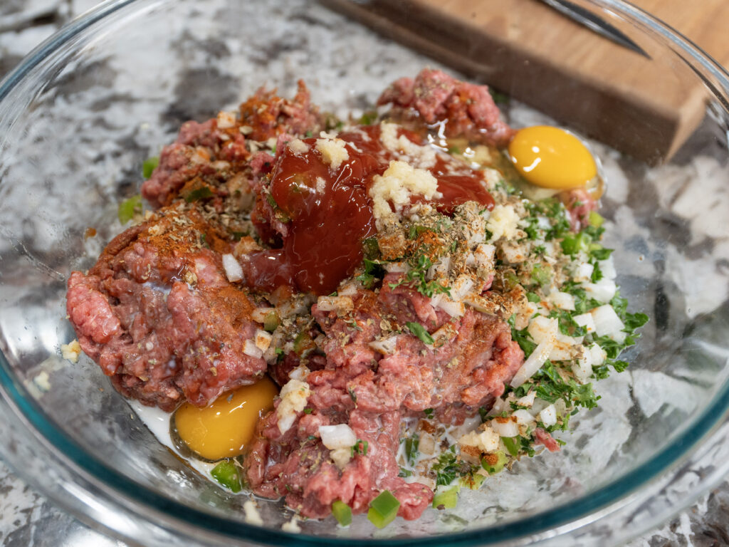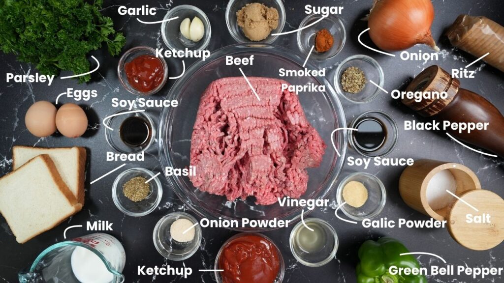 🥣 Key Ingredients: ground beef, onion, breadcrumbs, milk, ketchup