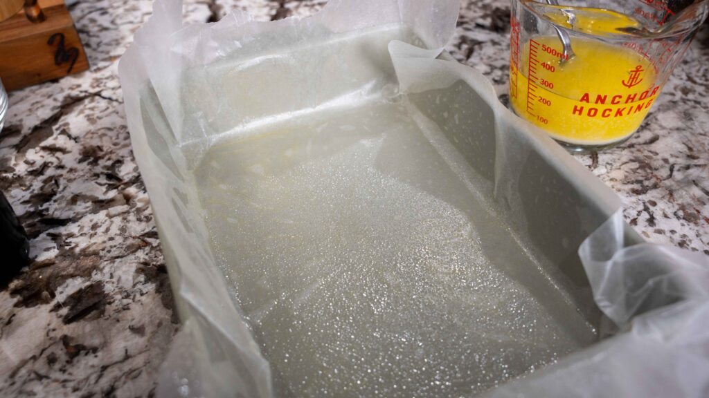 Preheat your oven to 350°F. Spray a 9×13 inch baking pan with nonstick spray. Line the pan with parchment paper, leaving an overhang on two sides for easy removal, then spray the parchment as well. Set aside.