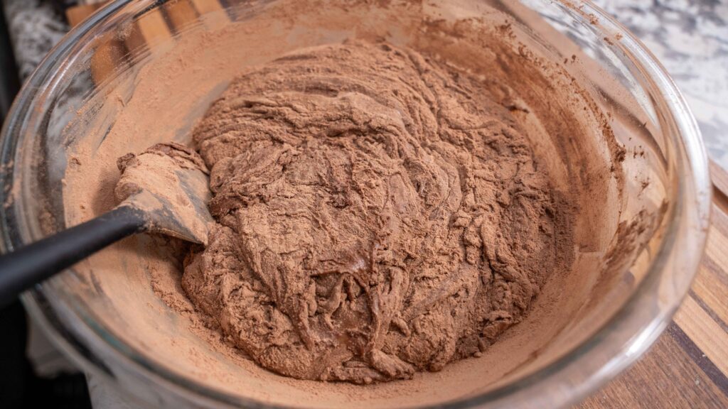 - Sift the flour and cocoa powder directly into the bowl, then add the salt and optional espresso powder. Stir gently until the dry ingredients are just incorporated. Avoid overmixing, as this can affect the fudgy texture. Fold in 1 cup of the chopped chocolate.