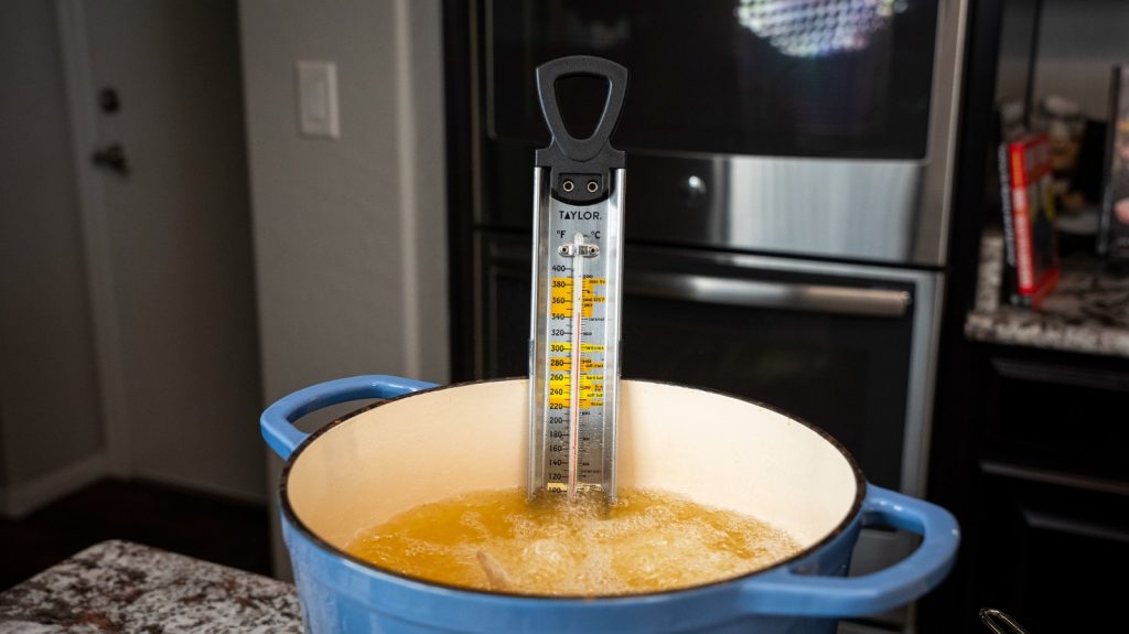 First things first, you gotta get your oil ready. Fill a large, heavy-bottomed Dutch oven or deep fryer with oil—about 1/3 of the way full. You want enough oil to fully submerge the wings, but not so much that it’ll bubble over when you drop ’em in. Heat the oil over medium-high heat until it reaches 350°F (177°C). I recommend using a thermometer to keep an eye on the temperature—it’s key to getting that perfect golden-brown crust.