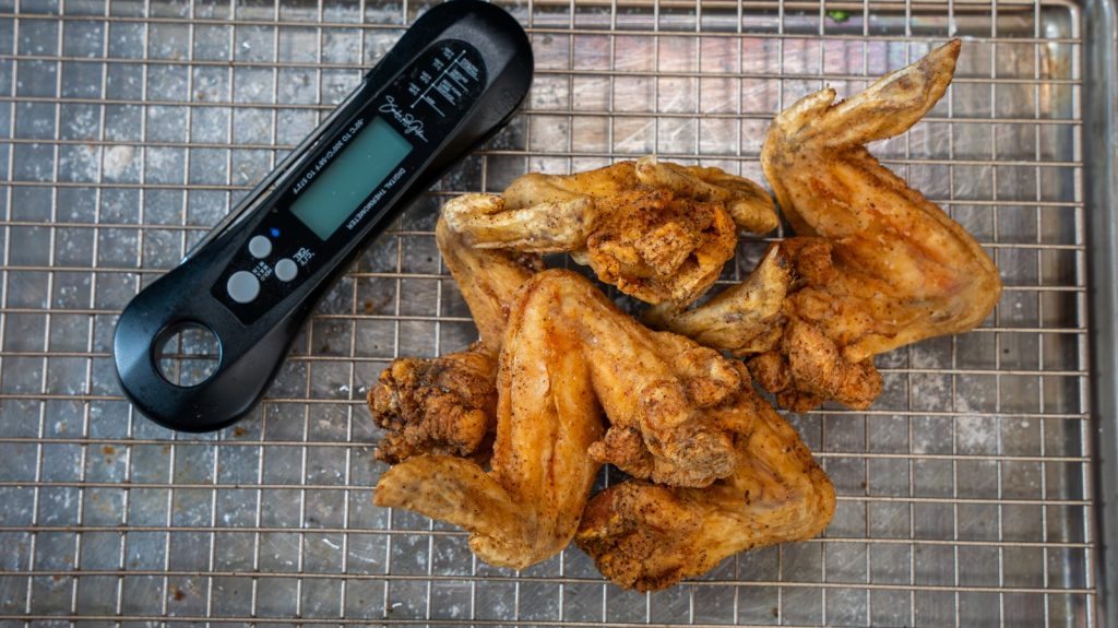 - Control Your Oil Temperature: Keep an eye on the oil temp! If it gets too low, your wings will soak up the oil and come out greasy. Too high, and they’ll burn before the inside cooks through. Stick around 350°F for the best results.