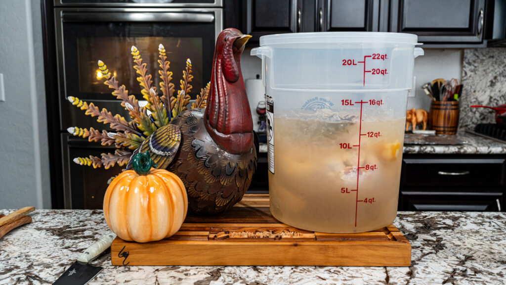 - If the brine doesn’t fully cover the turkey, make more using 4 tablespoons of salt for every 4 cups of water.