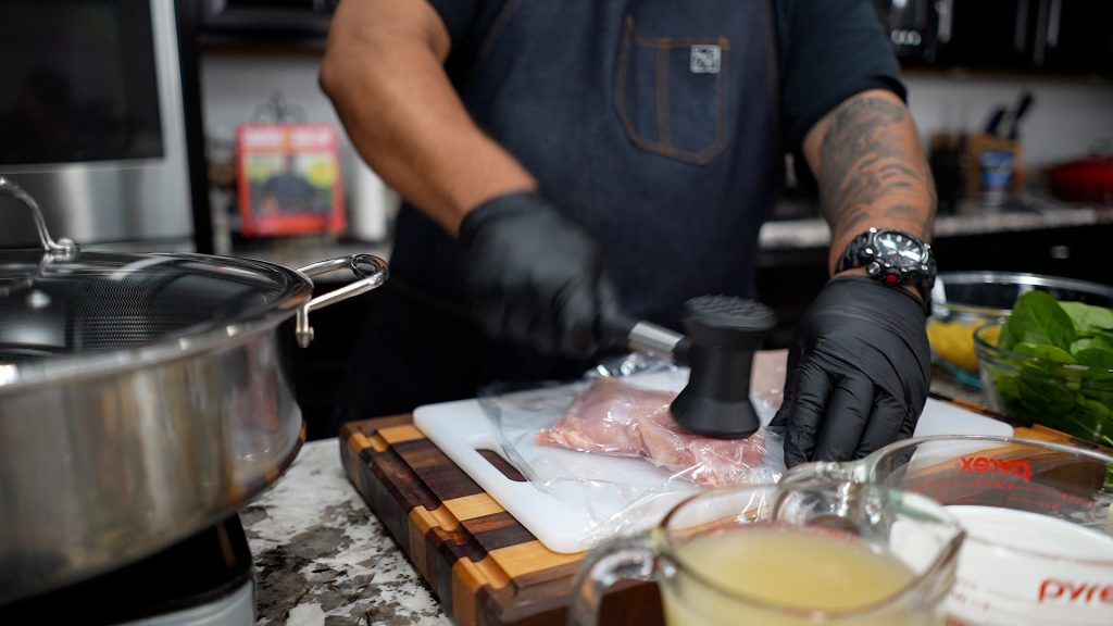- 2 large skinless, boneless chicken breasts, pounded to 1-inch thickness