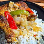 This easy and flavorful baked chicken leg quarters recipe is seasoned with a bold homemade spice rub and topped with sliced onions and bell peppers that roast alongside the chicken. The result? Crispy skin, juicy meat, and caramelized veggies — all in one pan and perfect for a weeknight dinner or casual gathering.