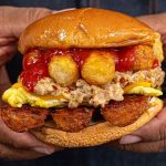Fluffy eggs, savory sausage gravy, and crispy tots piled high on a hearty sandwich. A decadent, flavor-packed breakfast that’s perfect for starting your day off right.