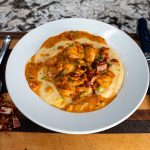 Return sausage and shrimp to the skillet. Toss to coat in the sauce. Taste and adjust seasoning with salt and pepper.