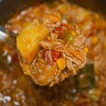 Pour in the chicken stock and add the cubed potatoes, corn, and shredded chicken. Reduce the heat, partially cover the pot, and simmer for 1 hour or until the stew thickens, and the flavors meld. Adjust the consistency by adding more stock if you prefer a soupier stew.