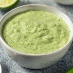 In a blender or food processor, combine Greek yogurt, lime juice, lime zest, extra virgin olive oil, water, grilled avocado, fresh cilantro, garlic clove, and green onion.