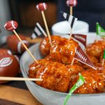 Using 2 tablespoons, dip each meatball into the sauce, or brush each meatball with the sauce. Return to the baking sheet and bake for an additional 1-2 minutes.