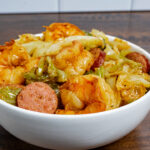 Keyword: bbq food, bbq recipe, fried cabbage with smoked sausage and shrimp