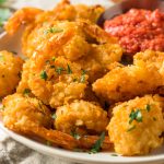 Place the fried shrimp on a plate lined with paper towels to drain off any excess oil.