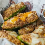 Spoon about 1 tablespoon of the mixture into each jalapeno half.
