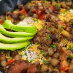 Garnish your breakfast skillet with slices of ripe avocado for an extra flavor boost and green onion or parsley. Serve your delicious one-pan breakfast skillet and enjoy!
