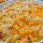 Add the shrimp, crab and lobster to the mac and cheese.
