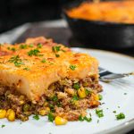 Place the sauté pan on a baking sheet (to catch any drips) and in the preheated oven. Bake until the potatoes are lightly browned and the edges are bubbling, about 30 minutes. If desired, pop under the broiler for 3 to 5 minutes for deeper browning. Let the shepherd's pie rest for 10-15 minutes before serving.