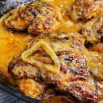 Place the browned chicken back into the skillet, covering them with the luscious gravy.