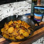 Wash and thinly slice the potatoes (leave skins on for texture).