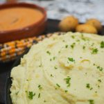 Transfer hot mashed potatoes to a serving bowl and top with remaining two slabs of butter and finely chopped parsley for Freshness.